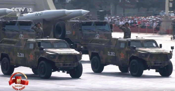 巡航导弹方队 毕西金:受阅的长剑-20A、鹰击-18C、长剑-1000导弹,是实施近程切确冲击、全域慑和制胜的“点穴”利器。长缨正在手,敢缚苍龙。做为“长剑”执剑人,我们势必动若雷霆、一击必中!计谋冲击群的第二个方队是崇高高贵声速导弹方队,受阅的鹰击-21、春风-17、春风-26D导弹以结合编组模式通过,向展现大国长剑的锐利刀锋。